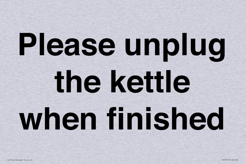 Please unplug the kettle when finished Sign