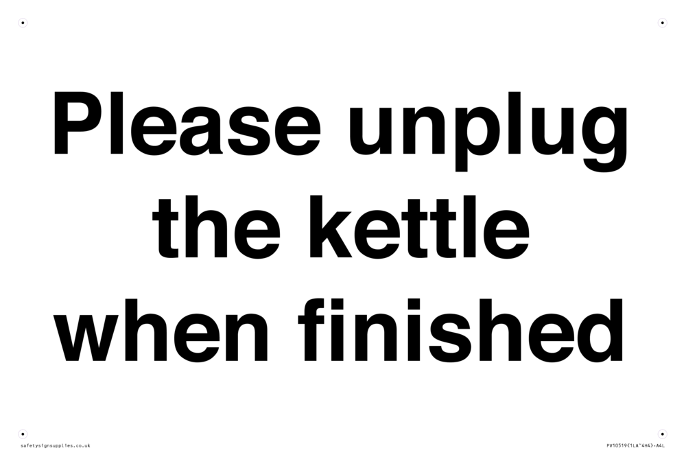 Please unplug the kettle when finished Sign