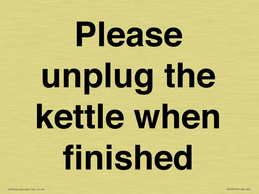 Please unplug the kettle when finished Sign
