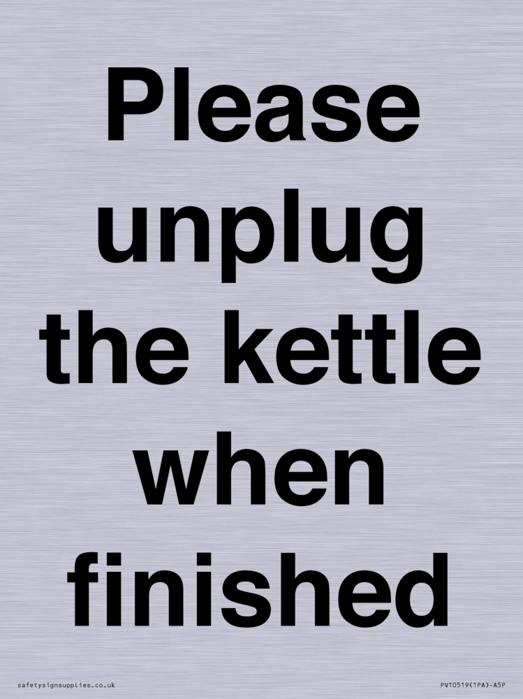 Please unplug the kettle when finished Sign