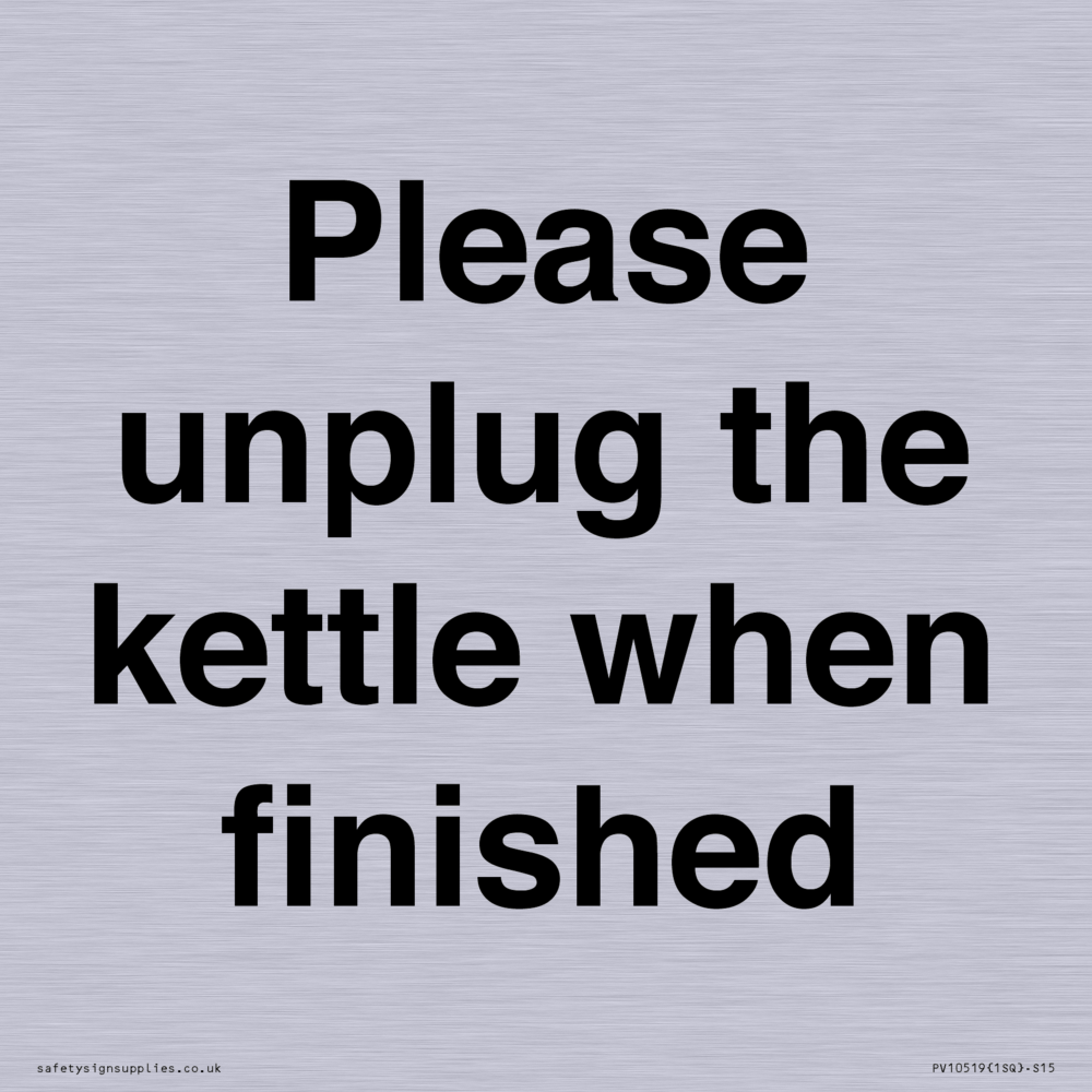 Please unplug the kettle when finished Sign