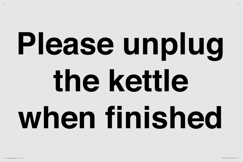 Please unplug the kettle when finished Sign
