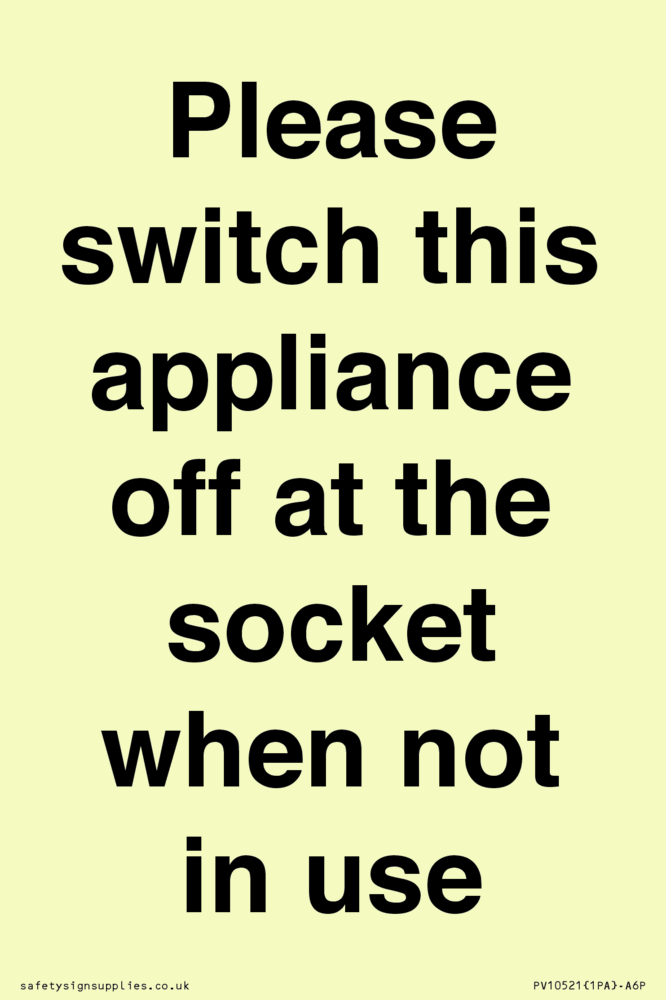 Please switch this appliance off at the socket when not in use Sign
