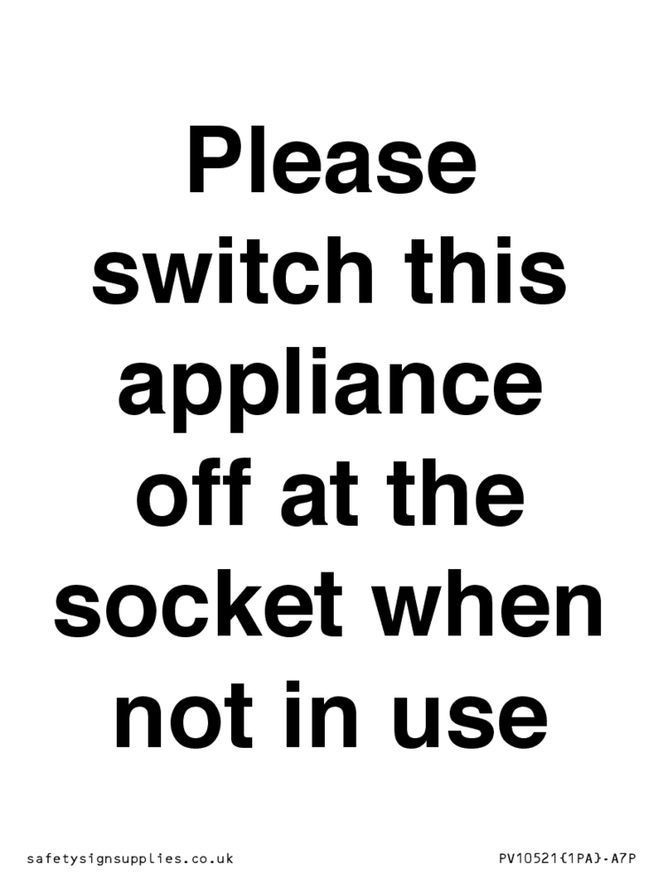 Please switch this appliance off at the socket when not in use Sign
