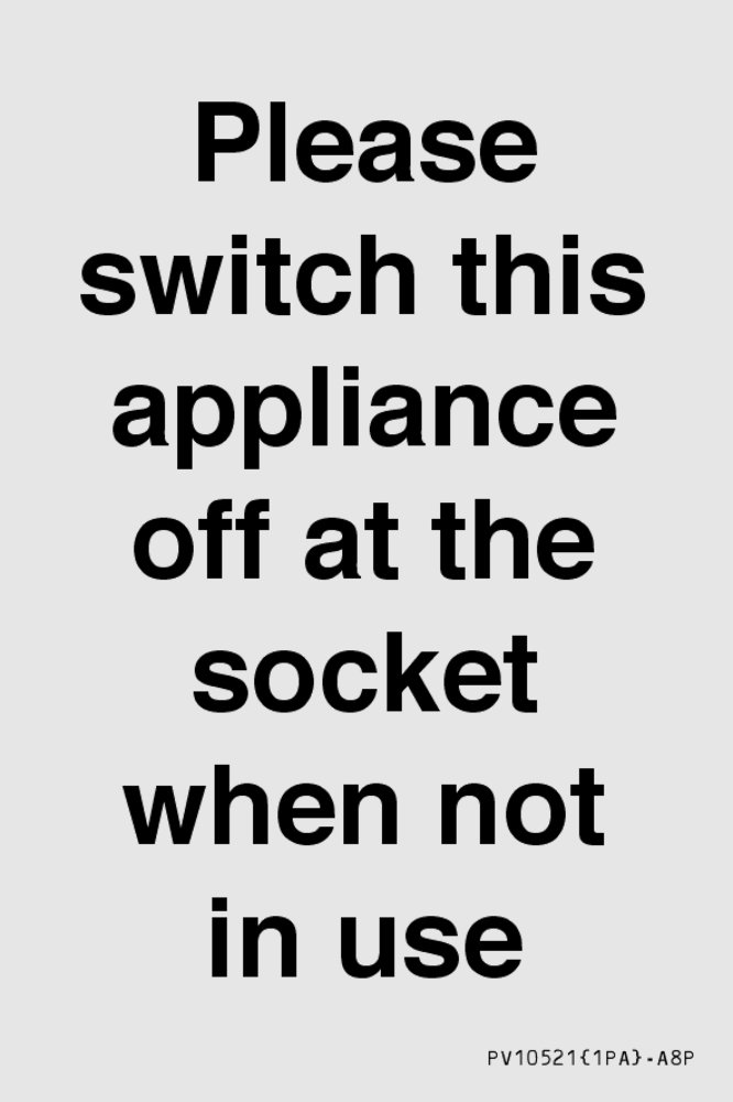 Please switch this appliance off at the socket when not in use Sign