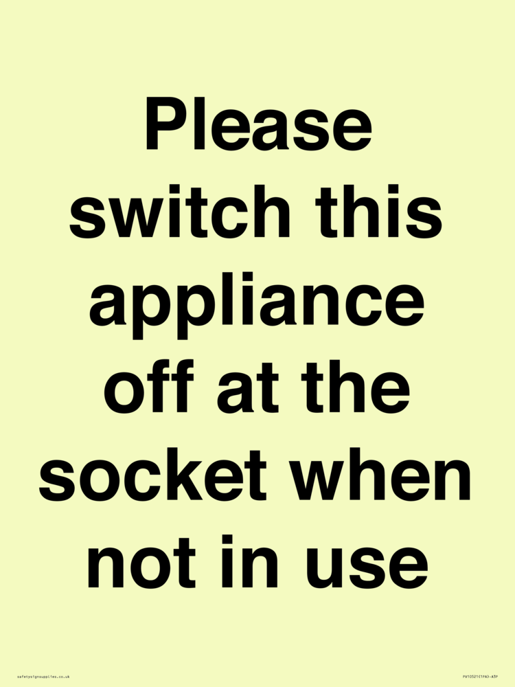 Please switch this appliance off at the socket when not in use Sign