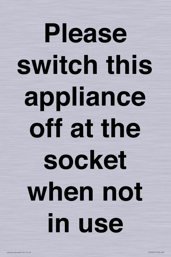 Please switch this appliance off at the socket when not in use Sign