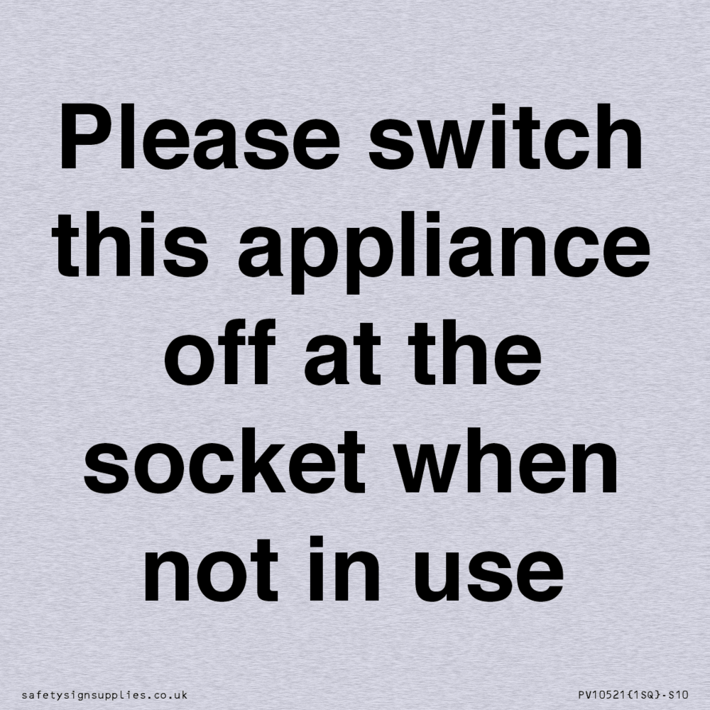 Please switch this appliance off at the socket when not in use Sign