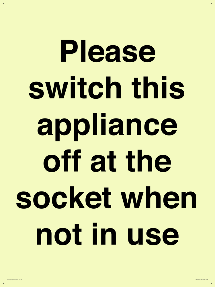 Please switch this appliance off at the socket when not in use Sign