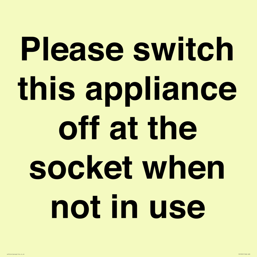 Please switch this appliance off at the socket when not in use Sign
