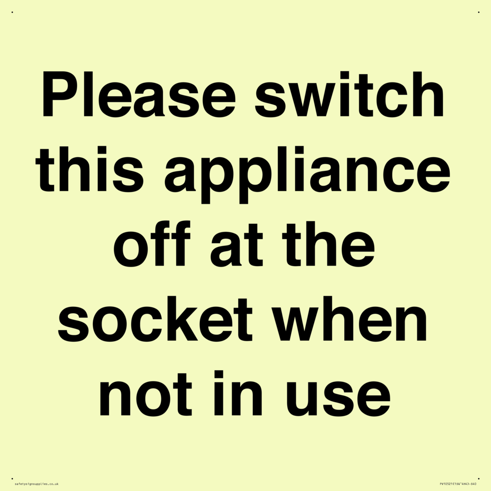 Please switch this appliance off at the socket when not in use Sign
