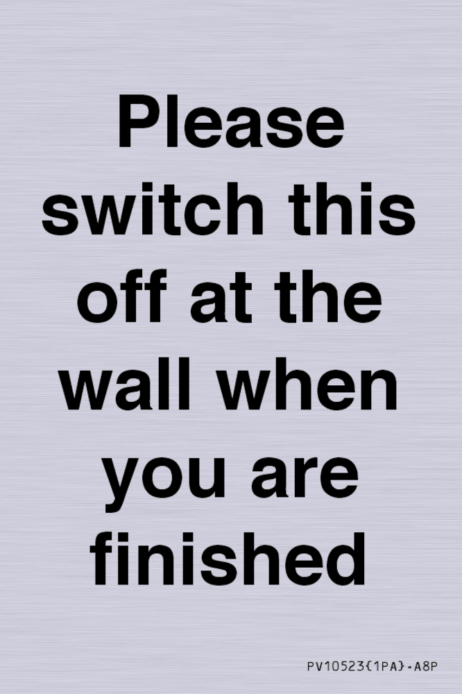 Please switch this off at the wall when you are finished