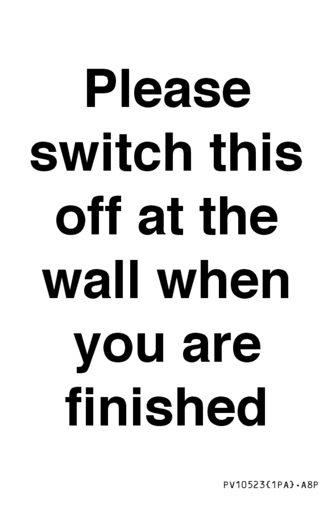 Please switch this off at the wall when you are finished