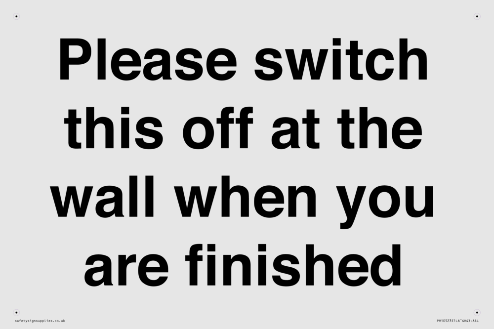 Please switch this off at the wall when you are finished
