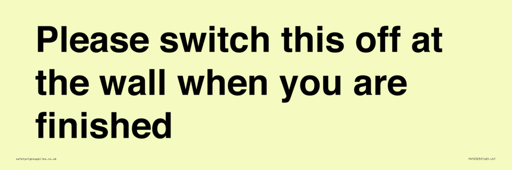 Please switch this off at the wall when you are finished