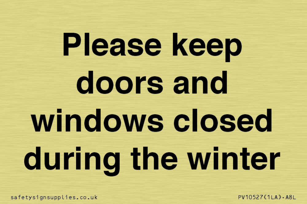 Please keep doors and windows closed during the winter Sign