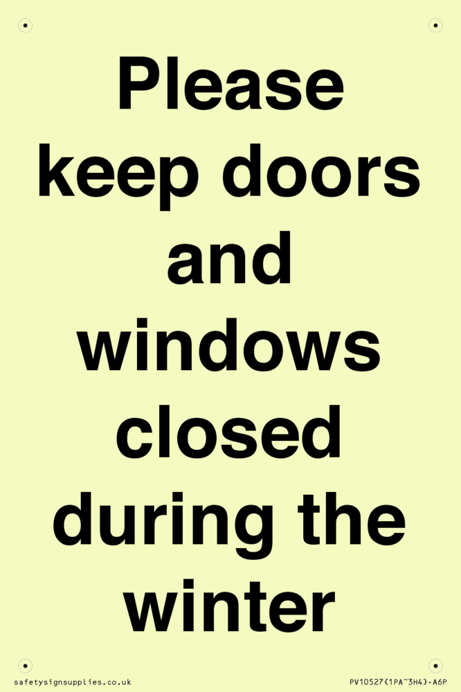 Please keep doors and windows closed during the winter Sign