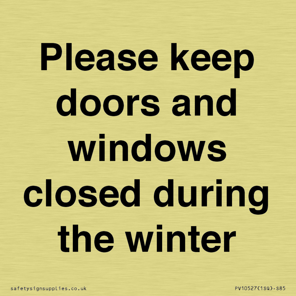 Please keep doors and windows closed during the winter Sign