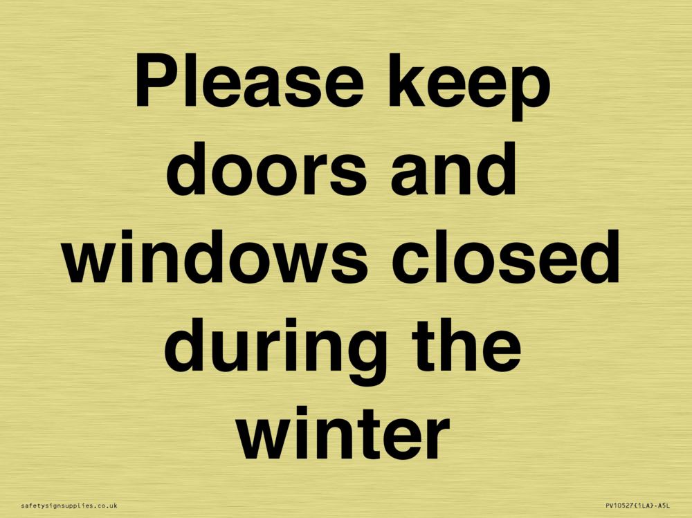 Please keep doors and windows closed during the winter Sign