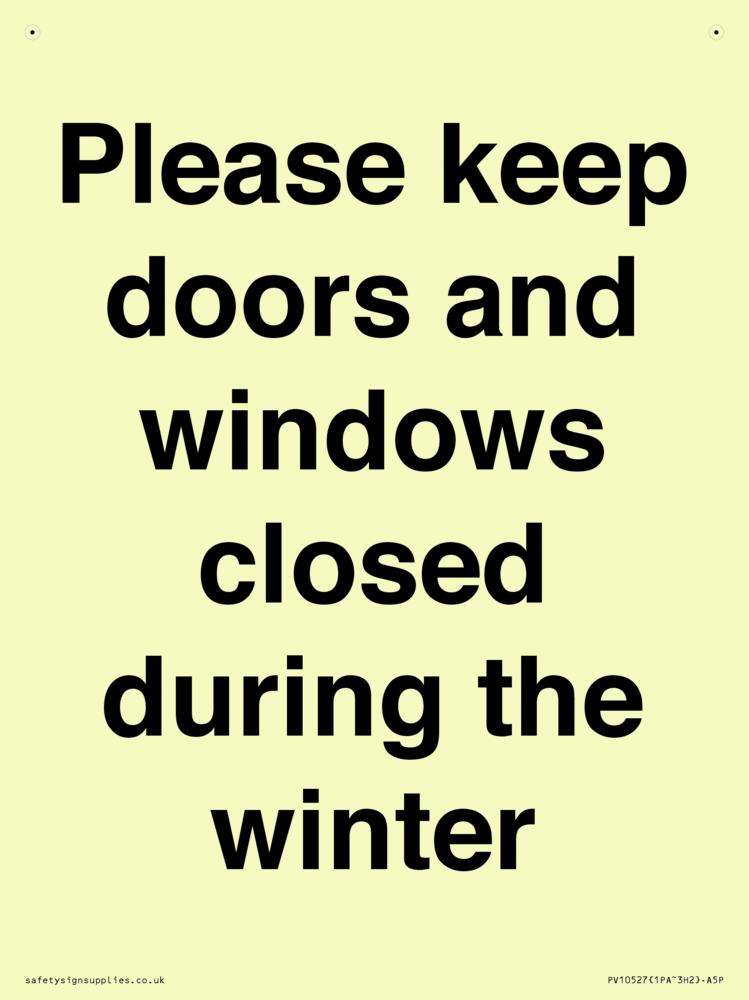 Please keep doors and windows closed during the winter Sign