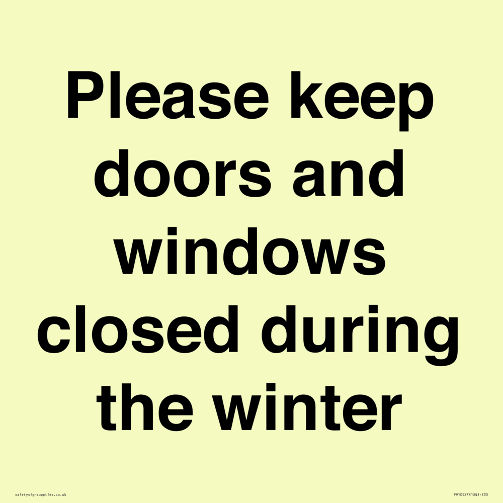 Please keep doors and windows closed during the winter Sign