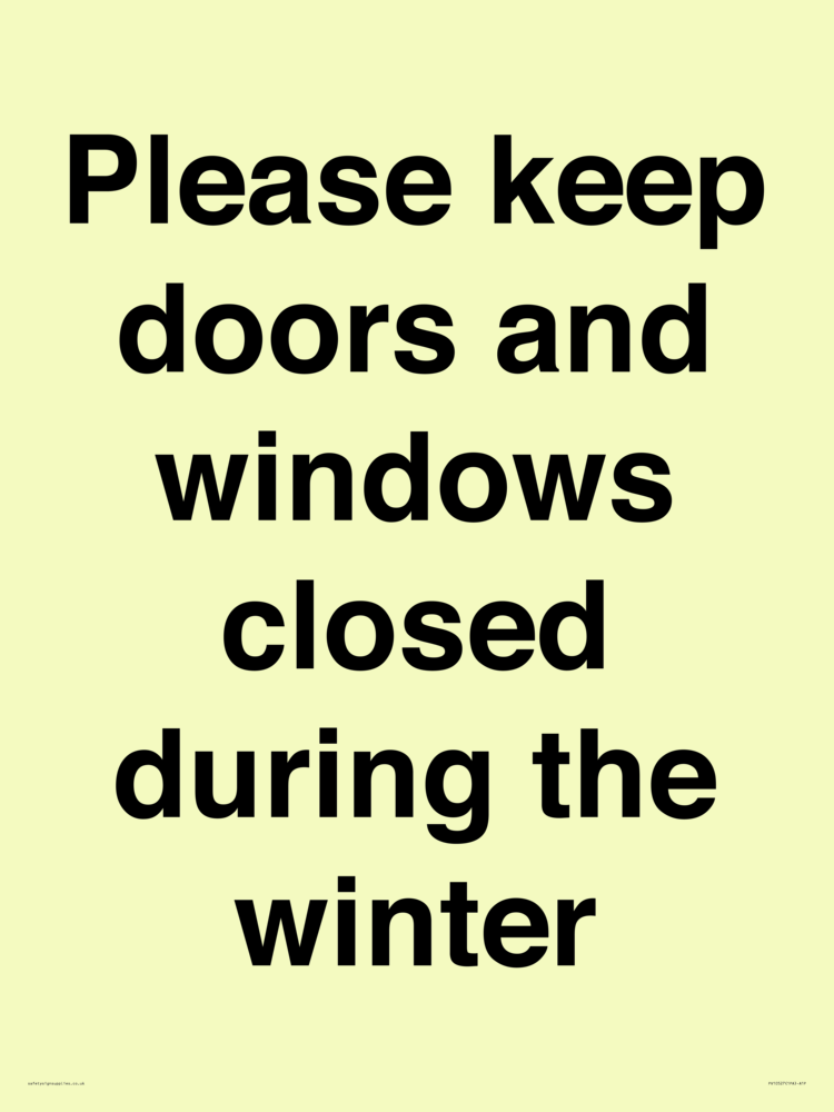 Please keep doors and windows closed during the winter Sign