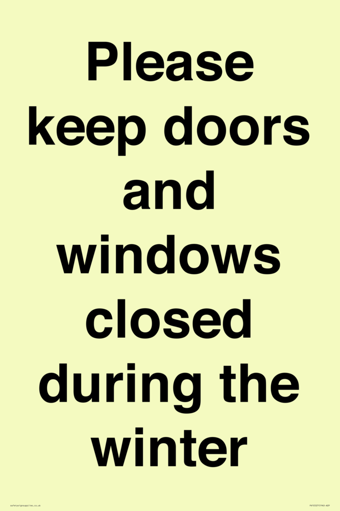 Please keep doors and windows closed during the winter Sign