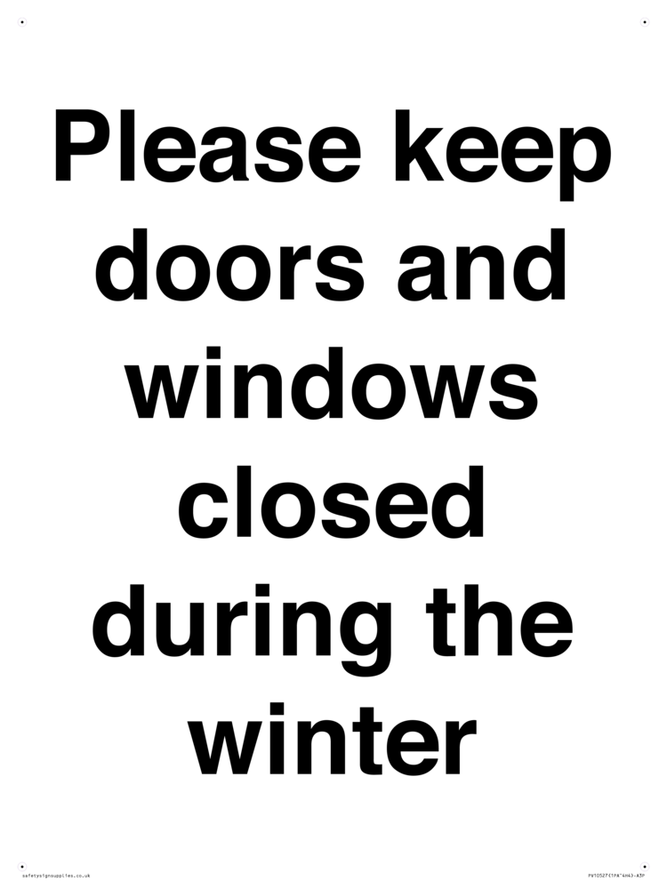 Please keep doors and windows closed during the winter Sign