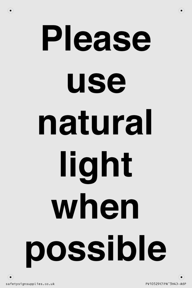 Please use natural light when possible Sign
