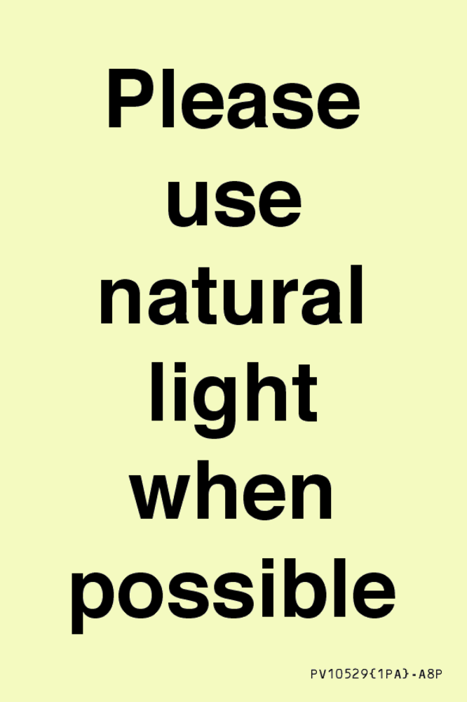 Please use natural light when possible Sign