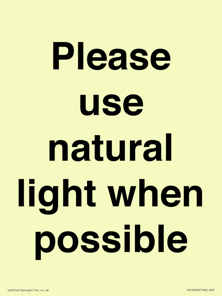 Please use natural light when possible Sign