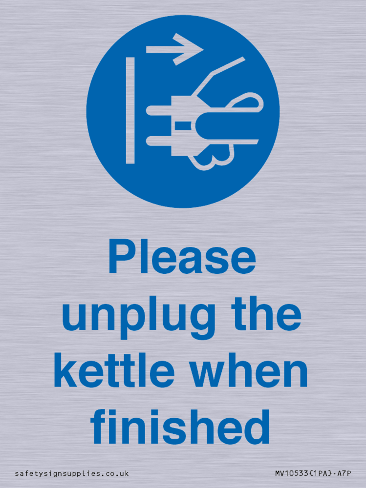 Please unplug the kettle when finished Sign