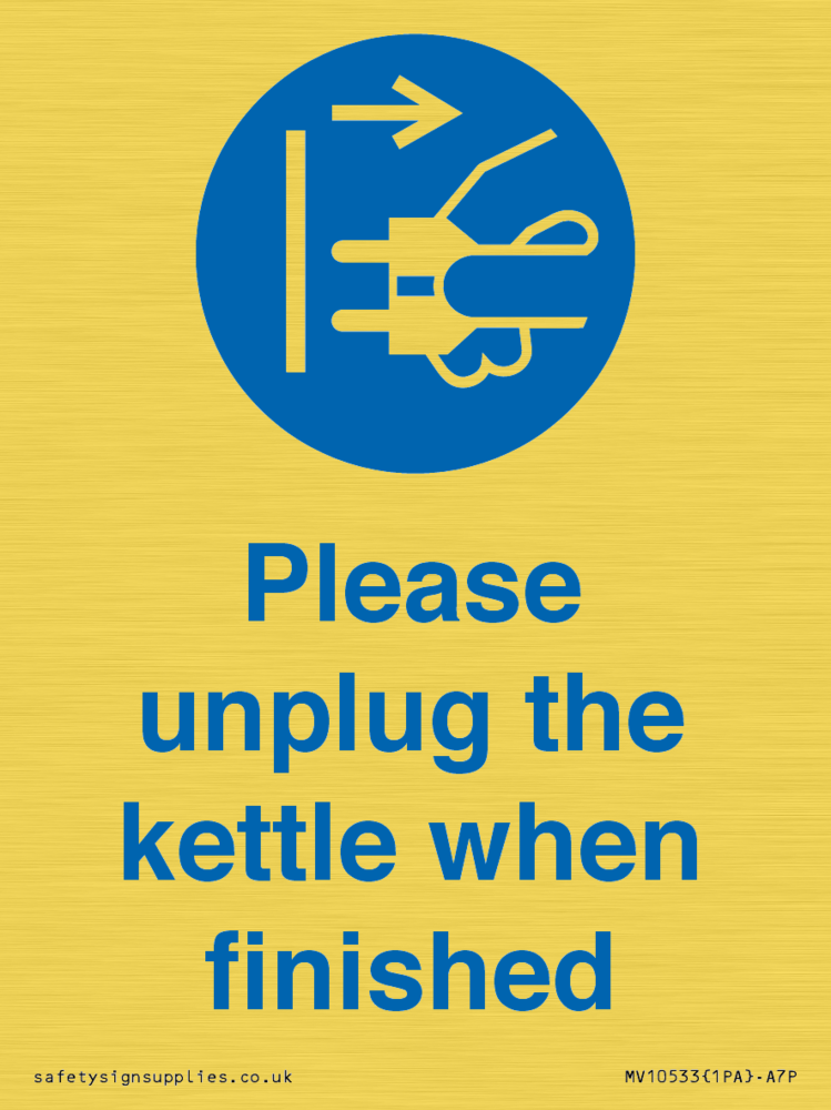 Please unplug the kettle when finished Sign