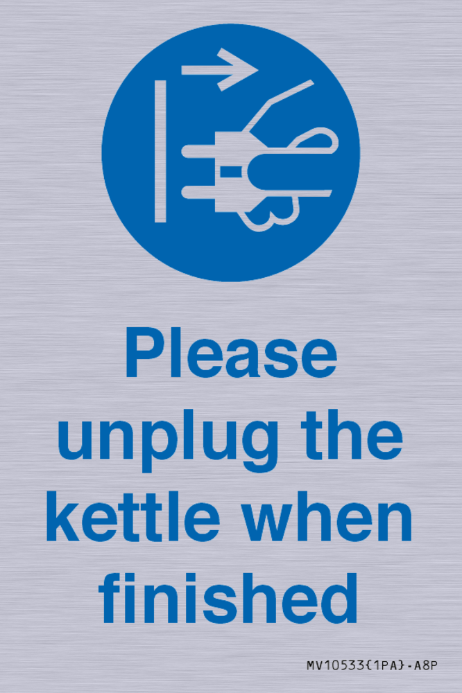 Please unplug the kettle when finished Sign
