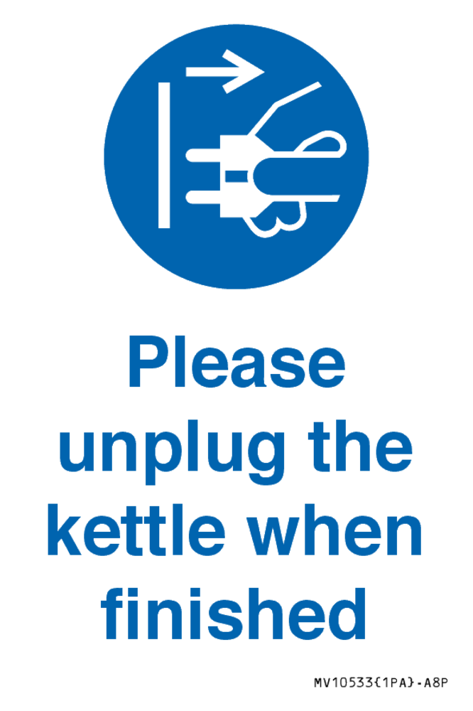 Please unplug the kettle when finished Sign