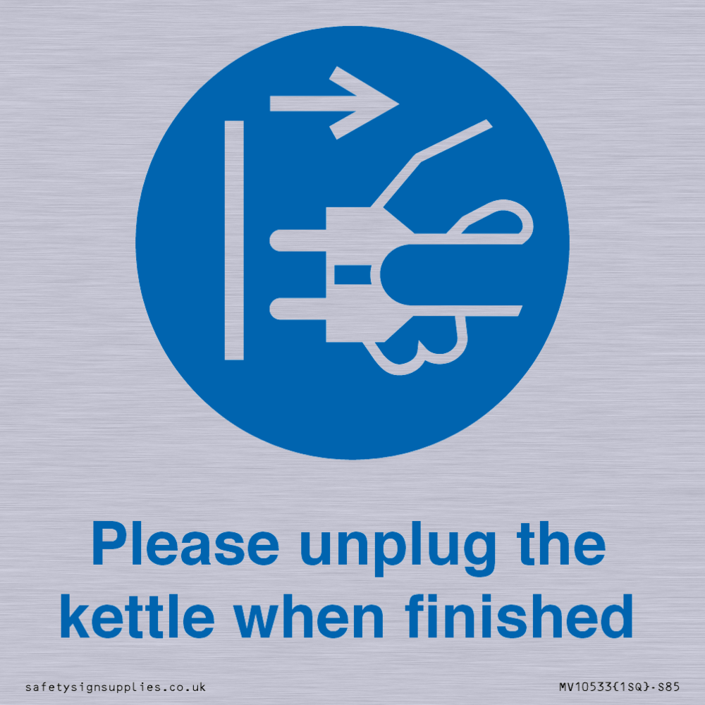 Please unplug the kettle when finished Sign