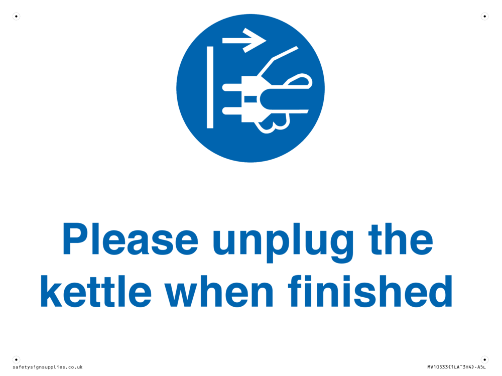Sign Text: Please unplug the kettle when finished