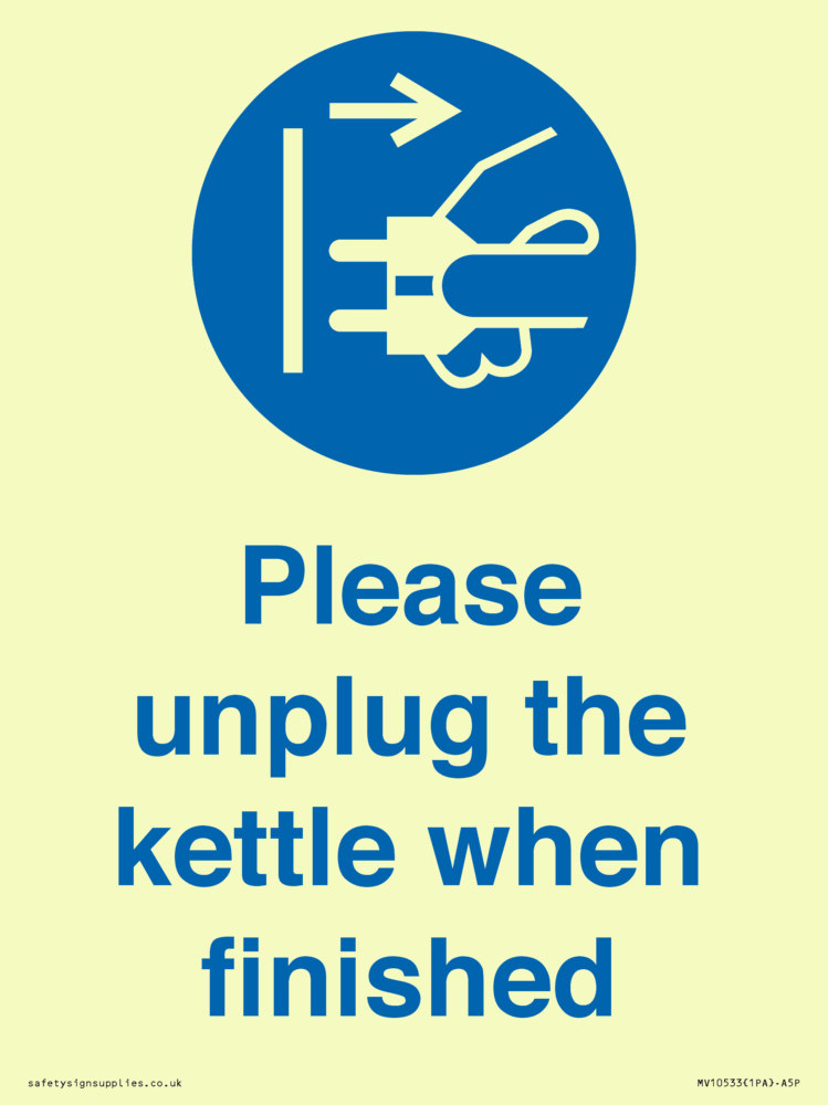 Please unplug the kettle when finished Sign