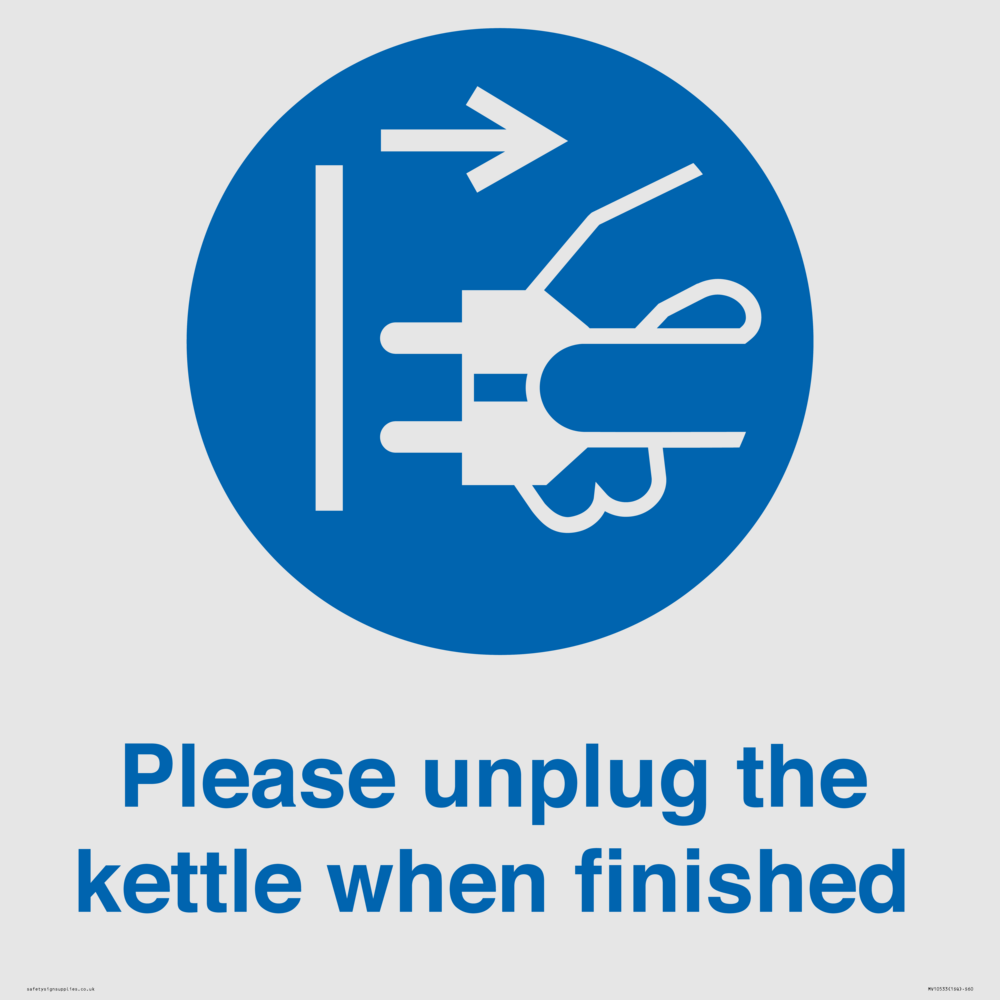 Please unplug the kettle when finished Sign