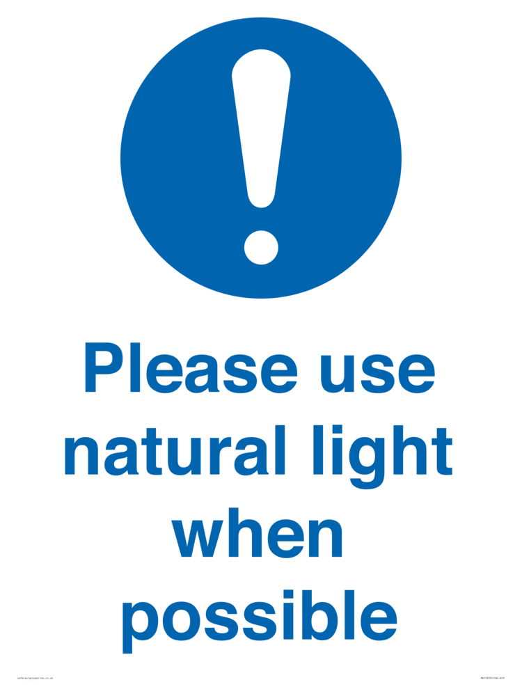 Sign Text: Please use natural light when possible
