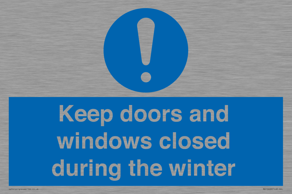 Keep doors and windows closed during the winter Sign