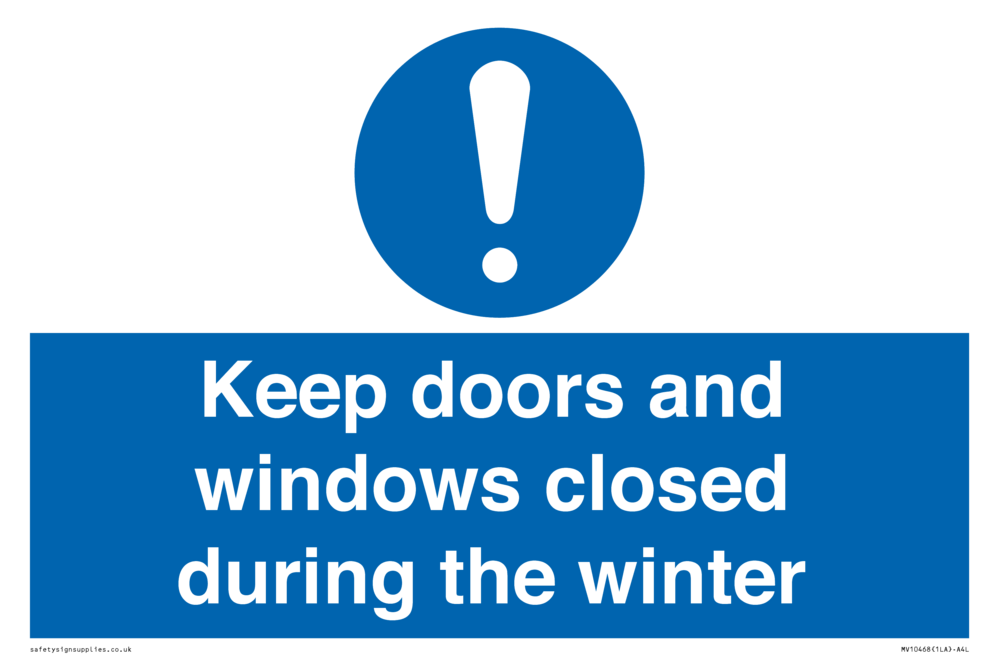 Keep doors and windows closed during the winter Sign