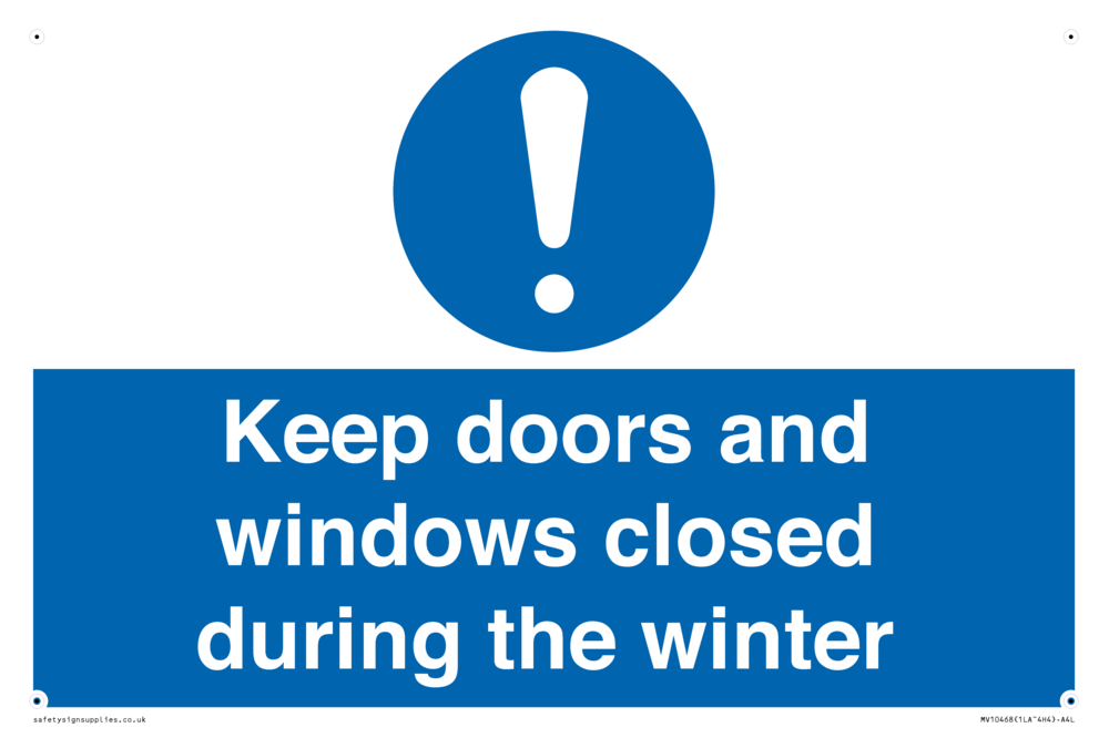 Sign Text: Keep doors and windows closed during the winter