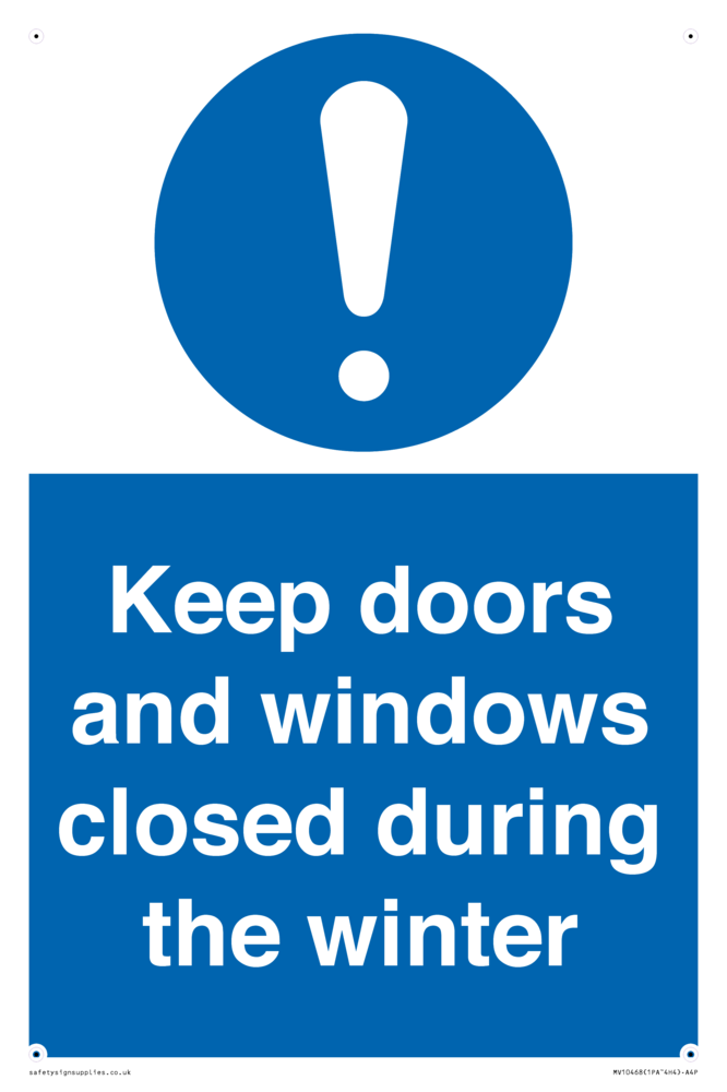 Keep doors and windows closed during the winter Sign