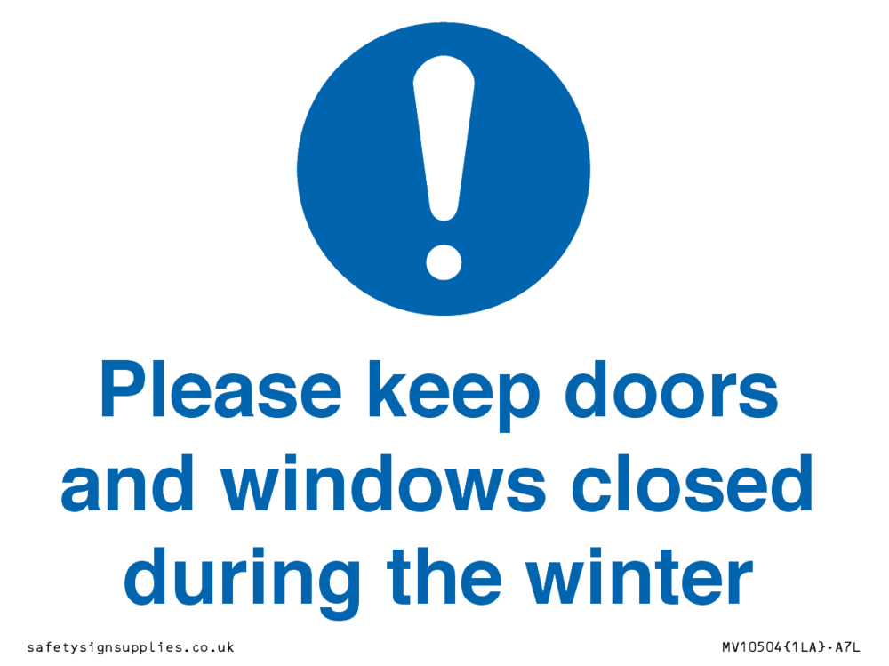 Please keep doors and windows closed during the winter Sign