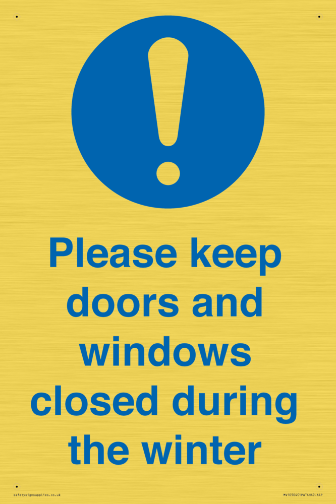 Please keep doors and windows closed during the winter Sign