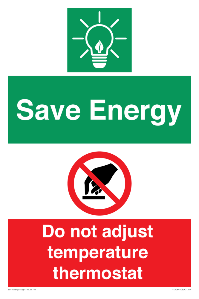 Save Energy - Do not adjust temperature thermostat Sign