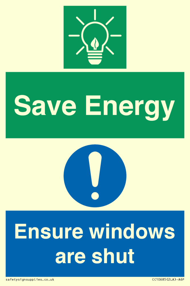 Save energy. Ensure windows are shut Sign