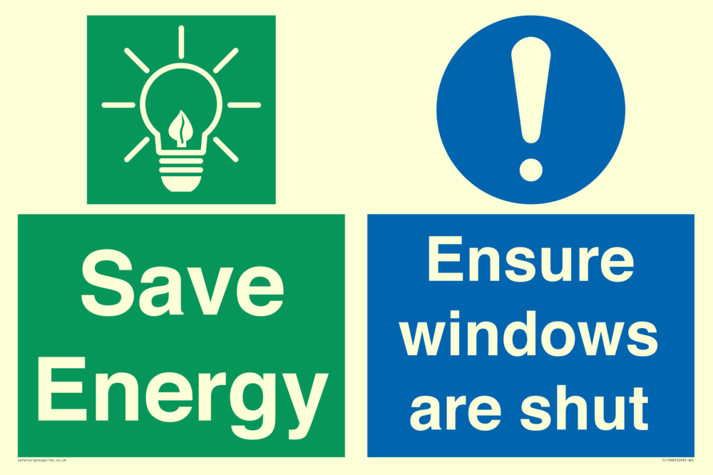Save energy. Ensure windows are shut Sign