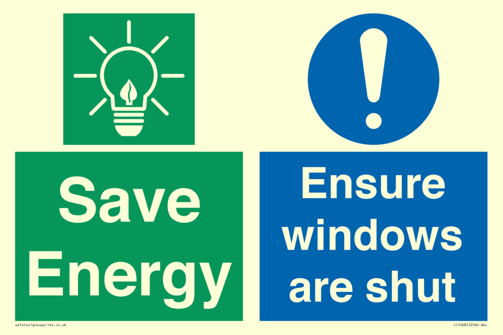 Save energy. Ensure windows are shut Sign